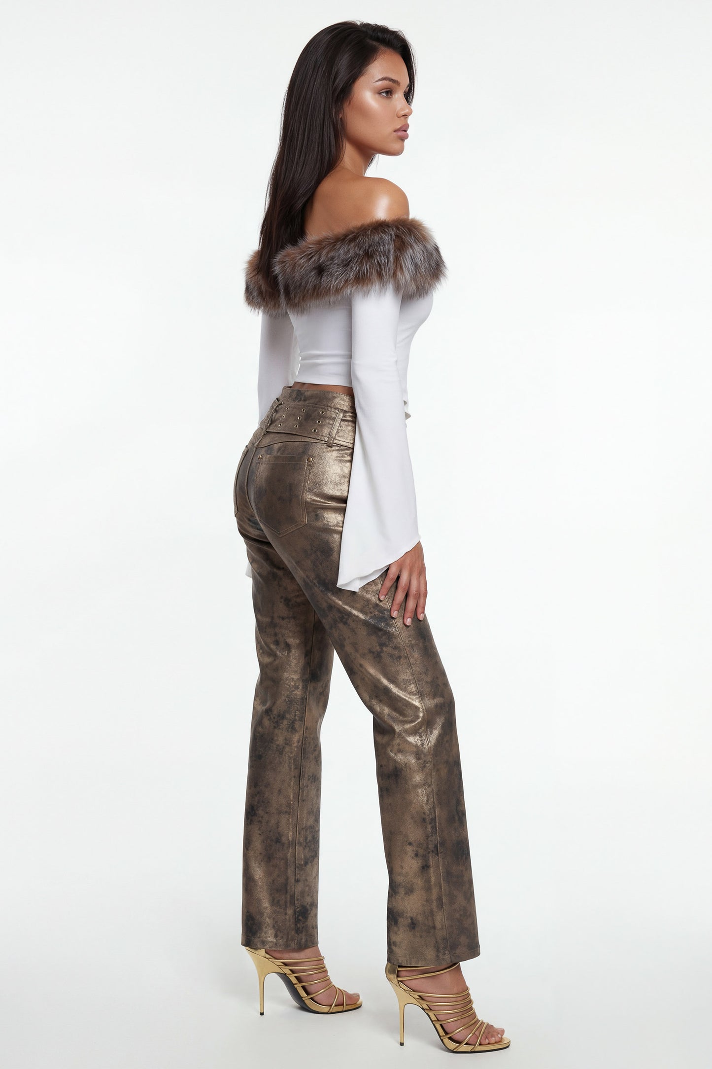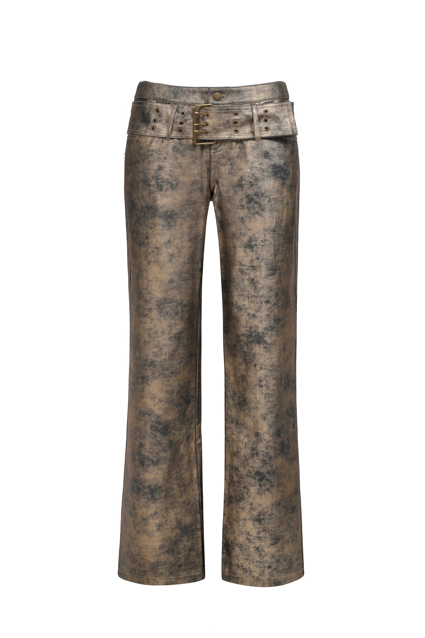 Extra-wide belt with metal eyelet detailing.